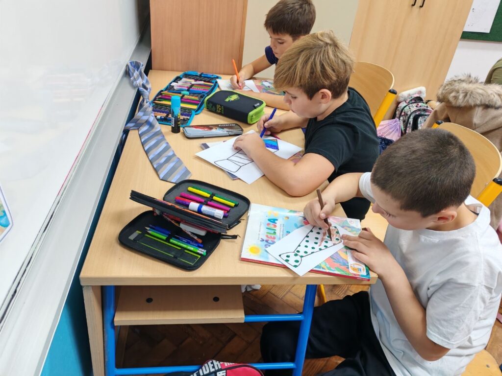 Također, u dežurstvu (kod učiteljice Romane Milovanović) održana je radionica izrade papirnate kravate. Sudjelovali su učenici razredne nastave koji su taj sat bili slobodni.