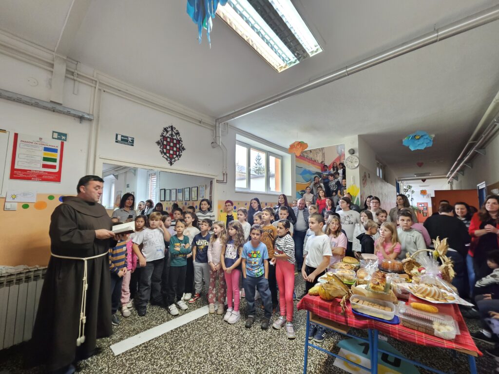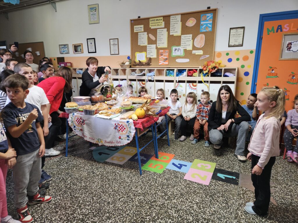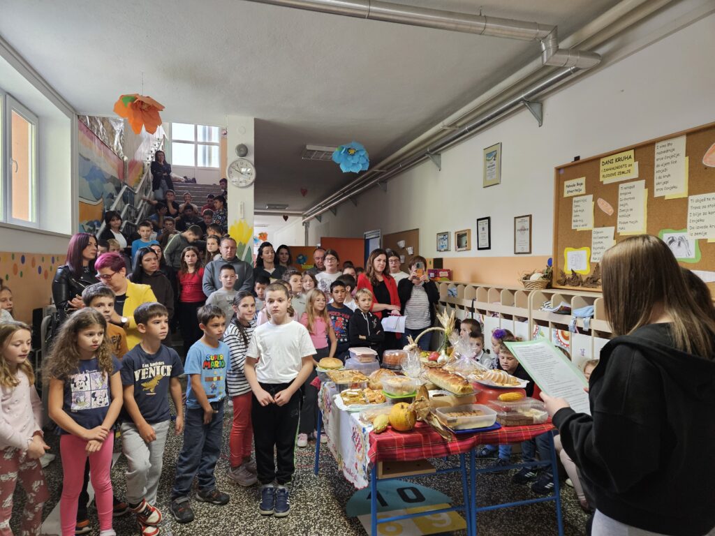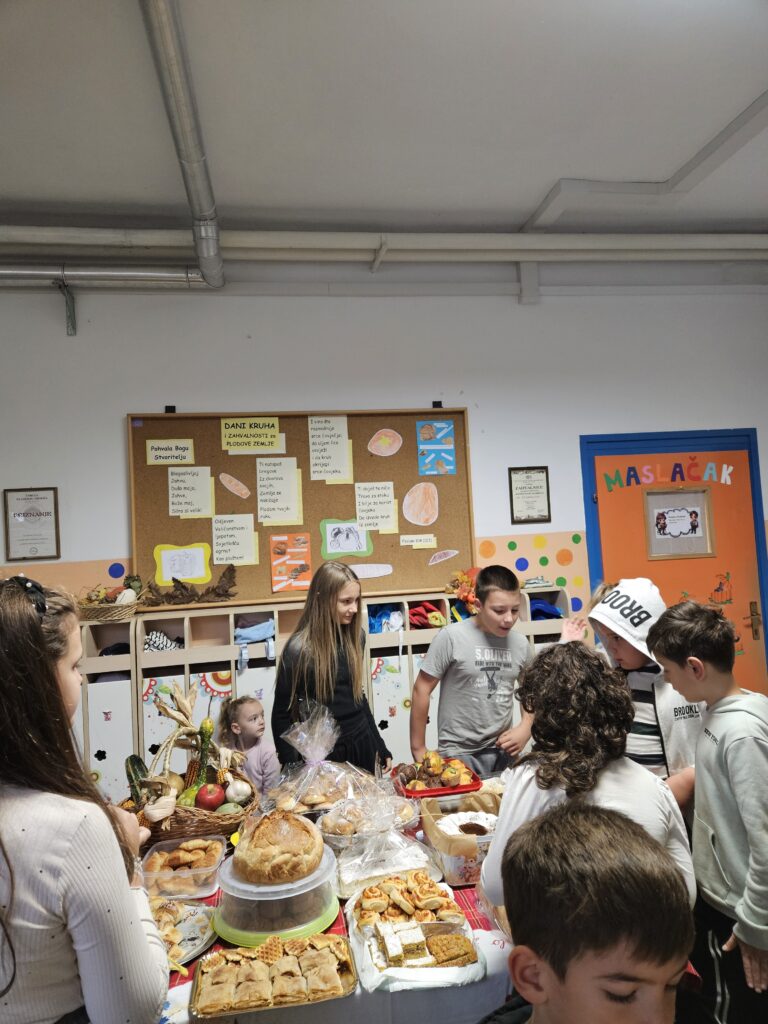 U našoj školi 21. listopada svečano su obilježeni Dani kruha i zahvalnosti za plodove zemlje. Učenici, roditelji i učitelji s puno ljubavi pripremili su raznovrsne krušne proizvode i plodove jeseni, a školskim prostorom širio se miris svježeg kruha i kolača.